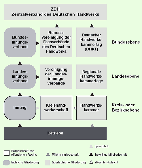 Innungen sind Körperschaften des öffentlichen Rechts. In einem Bezirk können sich Handwerksmeister der gleichen Branche zu einer Innung zusammenschließen. Diesen wiederum ist es freigestellt, sich zu einem Innungsverband - entweder auf Landes- oder Bundesebene - zusammenzuschließen.